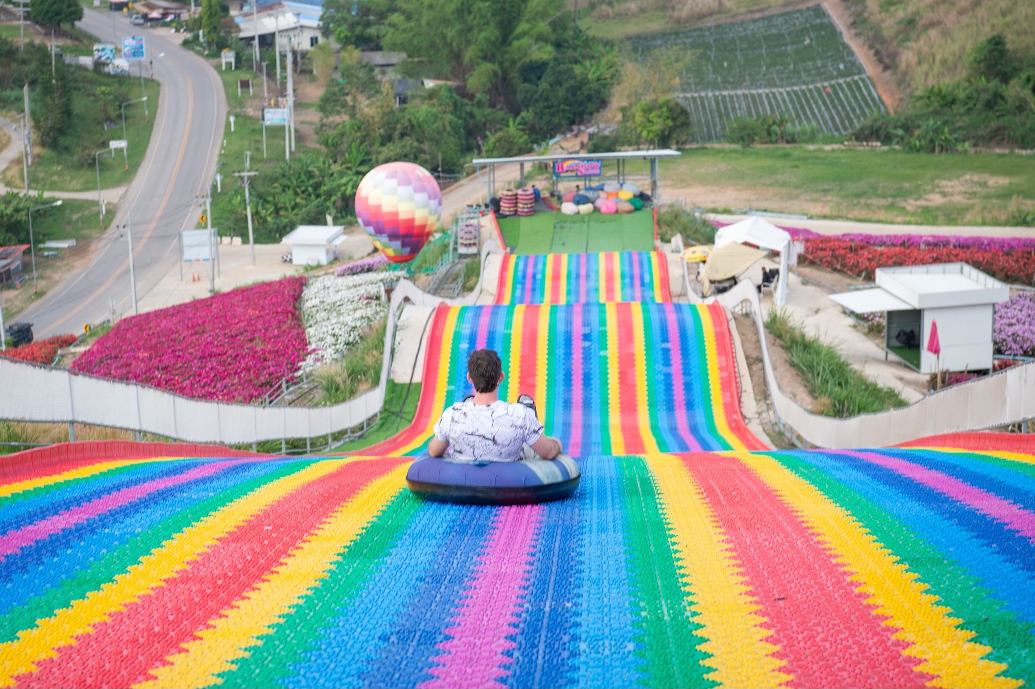 จากนั้นมาเปลี่ยนขึ้นรถสองแถว 4WD ของชาวบ้าน เป็นการกระจายรายได้ลงสู่ชุมชน เพื่อเดินทางต่อมาที่ ไฮเดนเยีย คาเฟ่ ซึ่งเป็นสถานที่ท่องเที่ยวที่จะบรรจุอยู่ในเส้นทางท่องเที่ยวใหม่ ที่เรามาสำรวจในครั้งนี้ ภายใน ไฮเดนเยีย คาเฟ่ มีการปลูกดอก Hydrangea และดอกไม้หลากสีสัน อื่นๆเต็มทั้งภูเขา สวยงาม มีจุดเช็คอินหลายจุด และมี Slider ให้นักท่องเที่ยวได้เล่นสนุกด้วย