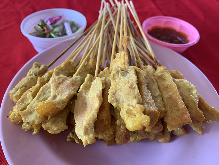 ร้านเจ้หยีหมูสะเต๊ะ ขายวันละเป็นพันไม้ หมูหมักข้ามคืนจนน้ำหมักเข้าเนื้อ เคียงมาด้วย น้ำจิ้มถั่วลิสง น้ำจิ้มอาจาด สูตรเจ้หยี หมูเนื้อนุ่มมากหอมเครื่องเทศ อร่อยไม่เหมือนใคร