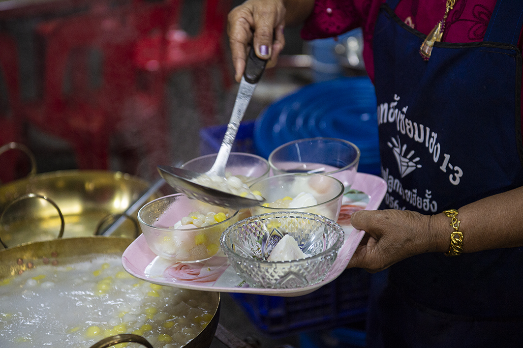 บัวลอยหน้างอ เจ้ดม หาทานได้เฉพาะย่านเก่าวังกรด เปิดร้านขายเฉพาะหน้าเทศกาล หรืองานสำคัญของย่านเก่าวังกรด หรือจ้างไปออกร้านขาย เท่านั้น