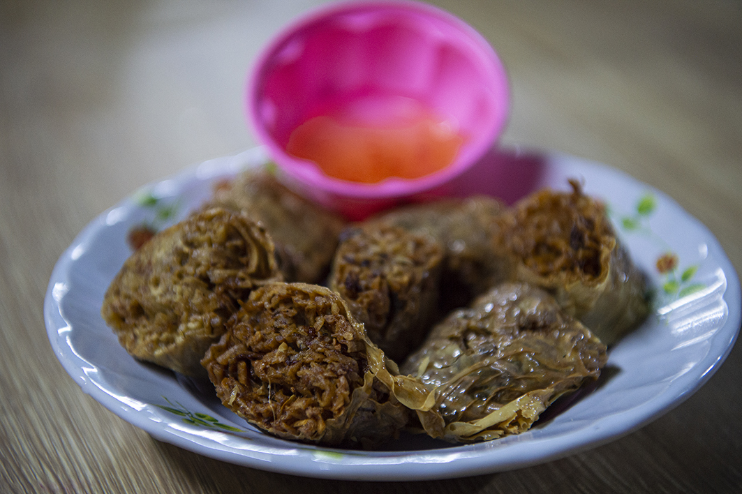 ตรงข้ามกับร้านเตี๋ยวปิ่นโตก็มีร้านขายข้าวเกรียบว่าว คุณยายจะมานั่งย่างให้สดๆในเตาถ่านแผ่นต่อแผ่นเลยที่ ทานร้อนๆอร่อยน่าดู หรือจะลองย่างเองทานเองก็เป็นประสบการณ์ที่ดีเลย