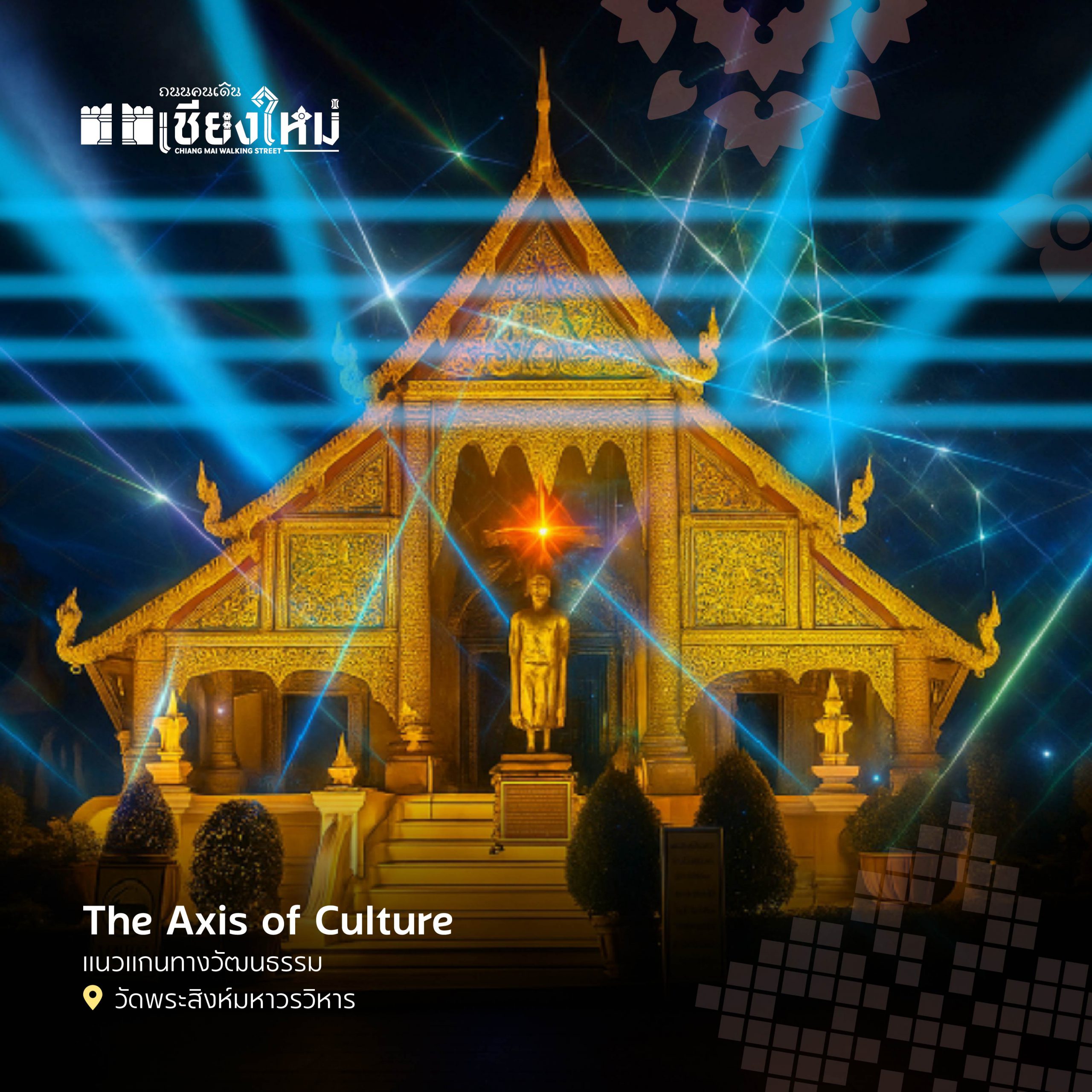 ถนนคนเดินสันกำแพง : ผนังลายศิลป์ (The Artful Wall) ทางด้าน ถนนคนเดินเชียงใหม่ (ท่าแพ) จุดแลนด์มาร์ค : “The Sand Stupa: เจดีย์แห่งการเริ่มต้น” แรงบันดาลใจจากประเพณีป๋าเวณีปี๋ใหม่เมือง จุดแสดงที่ 1 วัดพันอ้น : เจดีย์อัฐอร่าม (The Radiant Octagon) จุดแสดงที่ 2 หอพื้นถิ่นล้านนา : ผู้พิทักษ์ล้านนา (Lanna Guardian) สิงห์คู่ สัญลักษณ์แห่งพลังปัญญาและการคุ้มครอง ประตูเมืองและวัดวาอาราม จุดแสดงที่ 3 พิพิธภัณฑ์ธนารักษ์ : จากถนนแห่งศรัทธา สู่มรดกแห่งแผ่นดิน (From the Sacred Road to the Heritage of the Nation) จุดแสดงที่ 4 ศูนย์สถาปัตยกรรม คุ้มเจ้าบุรีรัตน์ : คุ้มแสงแห่งความทรงจำ (The Flame of Memory) นำเสนอเรื่องราวเกี่ยวกับคุ้มเจ้าบุรีรัตน์ พูดถึงความทรงจำผ่าน “สัตว์ทั้งสี่” ที่ทำหน้าที่เป็นดัง “ผู้พิทักษ์” ได้แก่ หงส์ กระต่าย กวาง และ นกฮูก จุดแสดงที่ 5 วัดพันเตา : ธารบุญสู่แสง (The Stream of Light) ต้นไม้ใหญ่และแสงที่สว่างไสวเป็นดุจ “สถานที่ศักดิ์สิทธิ์ที่เรืองรอง” หรือเป็นสัญลักษณ์ของความผาสุกที่กำลังจะเกิดขึ้น จุดแสดงที่ 6 วัดพันเตา : พนมมือ ศรัทธา (The Gesture of Radiance) จุดแสดงที่ 7 วัดเจดีย์หลวงวรวิหาร : ดวงประทีปแห่งจินตภาพล้านนา (The Lantern of Lanna Imagination) จุดแสดงที่ 8 หอพื้นถิ่นล้านนา : เมืองดอกไม้ แห่งล้านนา (The City of Flowers) จุดแสดงที่ 9 วัดทุงยู : เส้นทางแห่งการผลิบาน (The Blooming Way) จุดแสดงที่ 10 วัดพระสิงห์วรมหาวิหาร : แนวแกนทางวัฒนธรรม (The Axis of Culture)